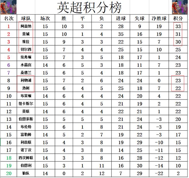 随着维拉2-1绝杀阿森纳+利物浦3-3!英超最新积分榜:曼城连胜